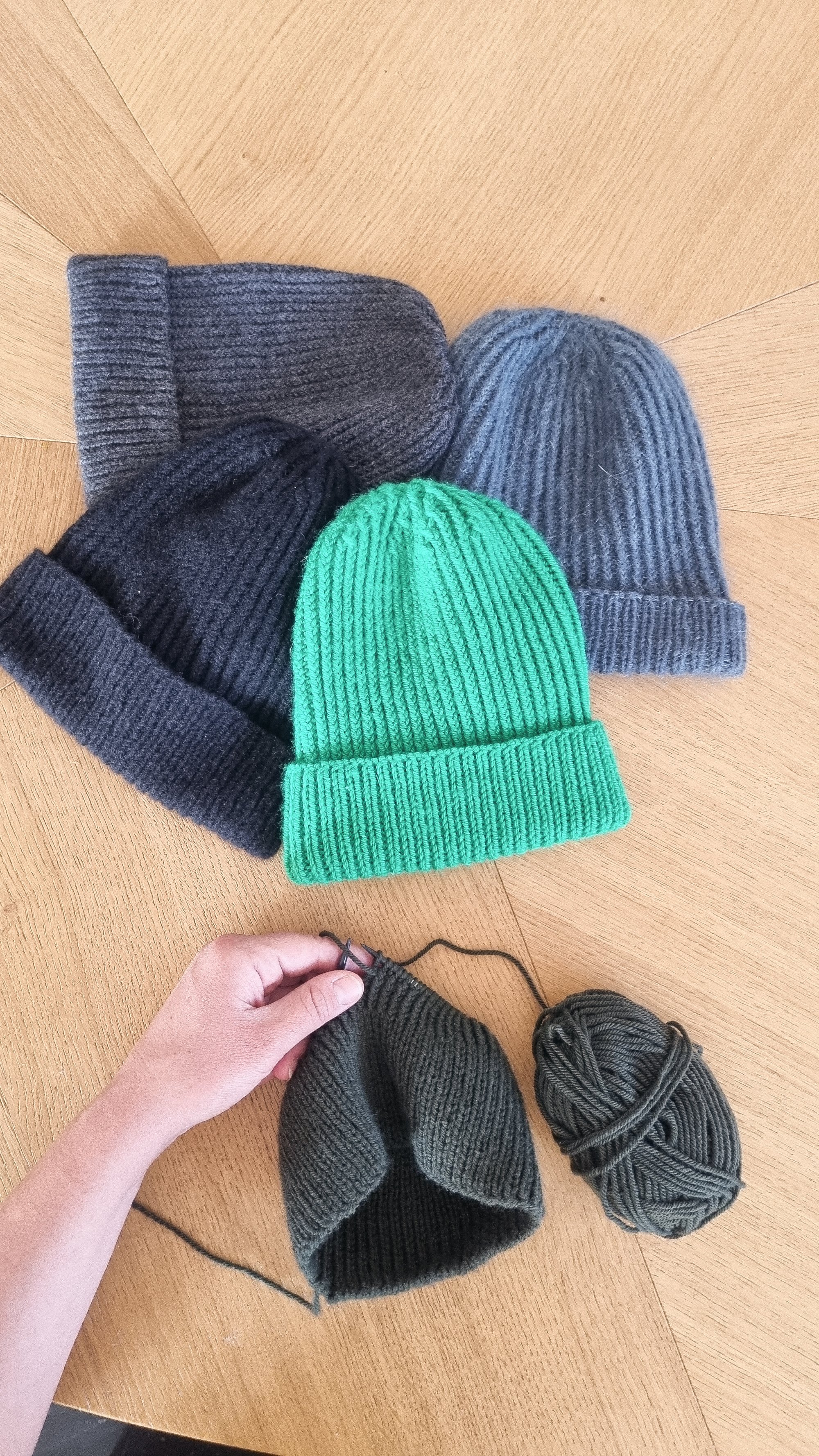 C'est un bonnet mixte, qui se tricote en rond de la base vers le sommet, sans coutures.